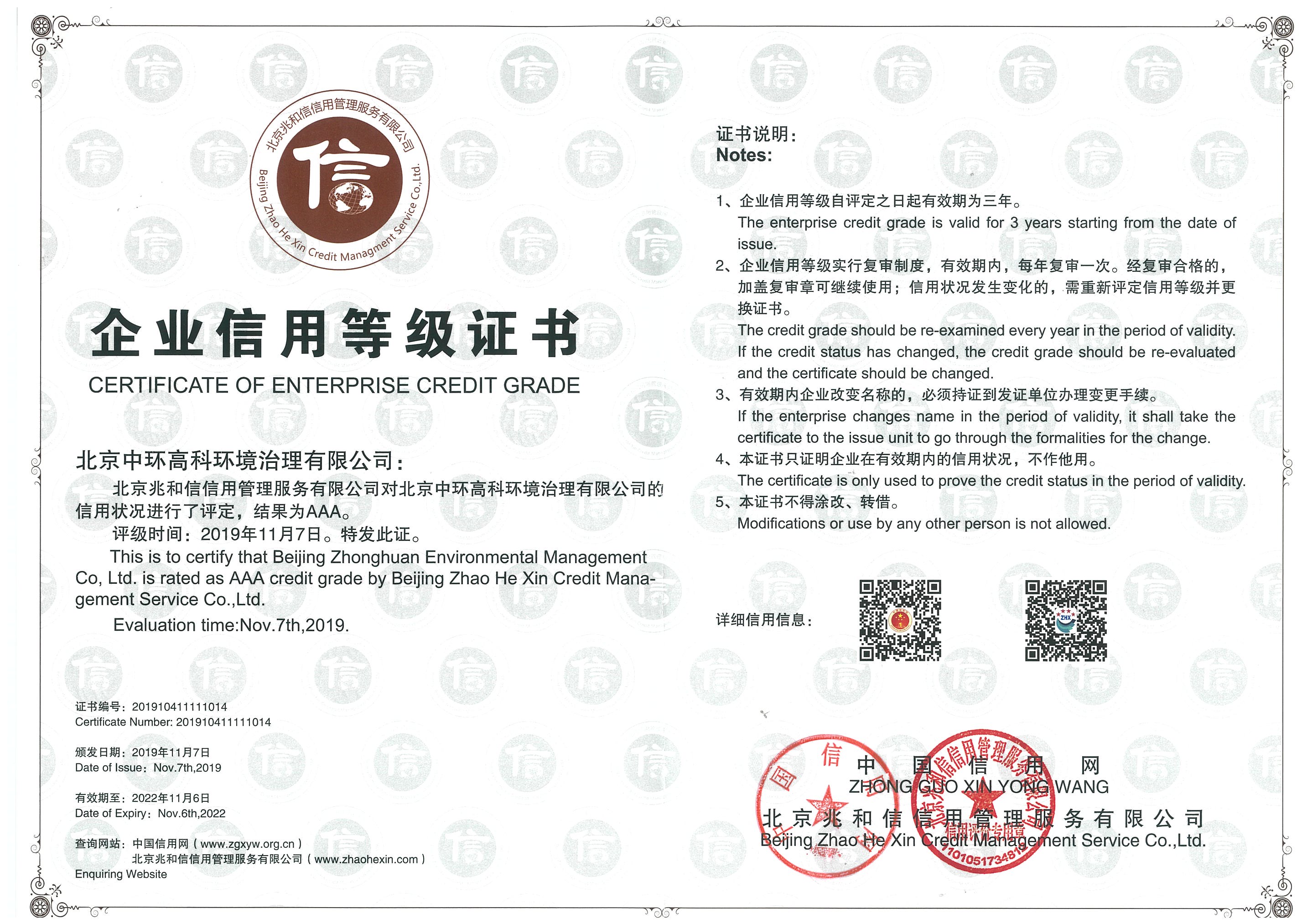 中国信用网AAA证书